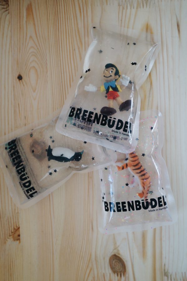 Momentan bin ich ganz begeistert von den Breenbüdel-Kühlkissen, ein Upcyclingprojekt aus Hamburg. Die Kühlpakete bestehen aus wiederverwertenden Spielzeugen, einer lebensmittelechten Folie und einer kompostierbaren Kühlfüllung mit Glitzerpartikeln. Dabei finden Schlumpfine, Goofy und Konsorten nochmal den Weg in unser Kinderzimmer. Die Kühlkissen werden in den Kühlschrank gelegt und bei Bedarf heitern sie kleine Patienten im Nu wieder auf – tolle Idee!