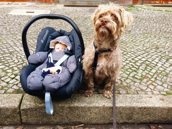 - Zu Beginn sind die Bedürfnisse von Hund und Kind relativ ähnlich. Besonders in den ersten Monaten waren beide happy. Junior hat nur im Wagen oder in der Trage beim Spazierengehen geschlafen, was dem Hund sehr zugute kam. Aber mit der Mobilität des Jungen und der Neugier an seiner Umwelt musste der Hund ganz schön zurückstecken bzw. auf Schneckentempo bis hin zu wir-beschäftigen-uns-eine-halbe-Stunde-mit-einem-Blatt-auf-dem-Gehsteig runterschrauben.