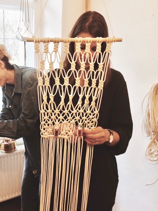 Zugegeben, der Mann musste ein bisschen schmunzeln, als ich ihm von meinem Macramé aka Knüpfteppich Workshop erzählte. Dörte Bundt, Besitzerin von California Dreaming, dem Macramé Designlabel hat es geschafft, ein fast schon vergessenes Handwerk zurück nach Deutschland zu bringen. Angefangen hatte alles mit einem alten Vintage-Magazin von Etsy, das sie sich gekauft hatte, um ihre Berliner Wohnung aufzuhübschen. 2013 wurde aus dem Hobby ein Business und sie startete mit einem eigenen Online Shop. Mittlerweile führt Dörte nicht nur diesen erfolgreich, sie hat auch ein Berliner Studio und gibt Workshops, um die Kunst des Knotens zu lehren. Ein entspannter Nachmittag mit interessanten Geschichten, kreativen Menschen und einer schönen, neuen Wanddeko.