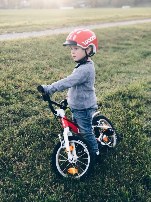 - Der Helm: Puh, das ist natürlich ein Unterschied wie Tag und Nacht! Ich war begeistert, als ich unsere schräg sitzende Nussschale gegen einen wirklich gut passenden und wesentlich sichereren woom Helm eintauschte. Der Helm lässt sich super leicht mit einem Magneten öffnen und verschließen, das ist kinderleicht, hält aber beim Sturz bombenfest. Er hat einen kleinen Sonnenschutz vorne und geht bis über die Schläfen. Das Beste ist, dass man ihn enger und weiter stellen kann, während er auf dem Kinderkopf sitzt.