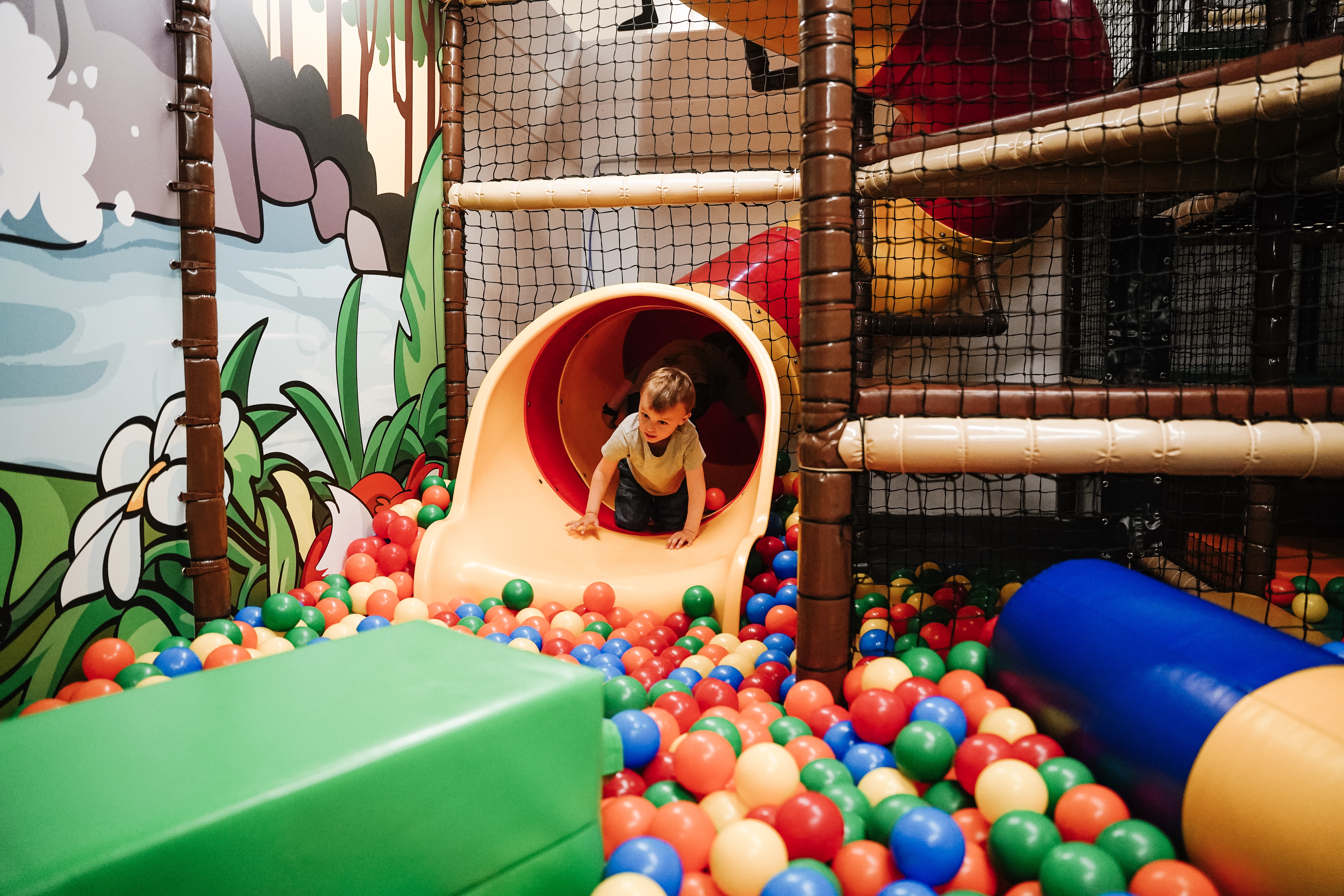 Macht nichts, die Kinnlade kann gleich unten bleiben, denn für den riesen Indoorspielplatz im Untergeschoss gibt es die volle Punktzahl.