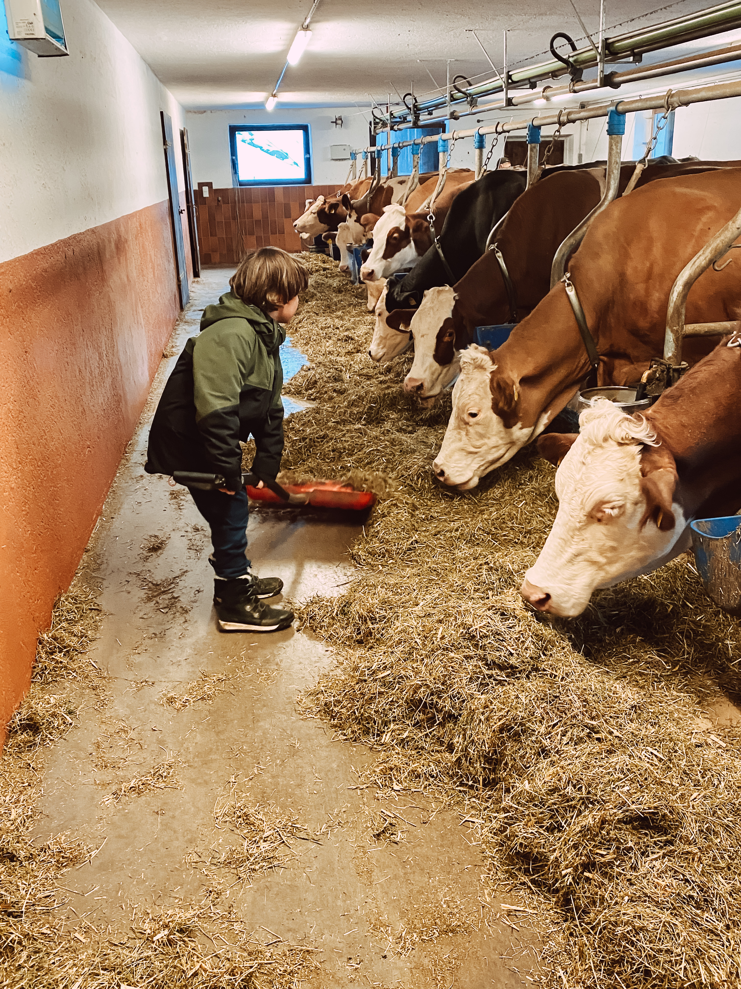 Das Aufregendste an unserem Urlaub war aber definitiv die Stallerfahrung, nicht nur für die Kids. Bauer Walter empfängt jeden Nachmittag fleißige Helfer, die beim Füttern, Ausmisten und Melken helfen wollen.