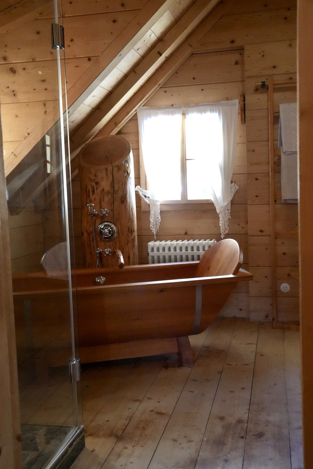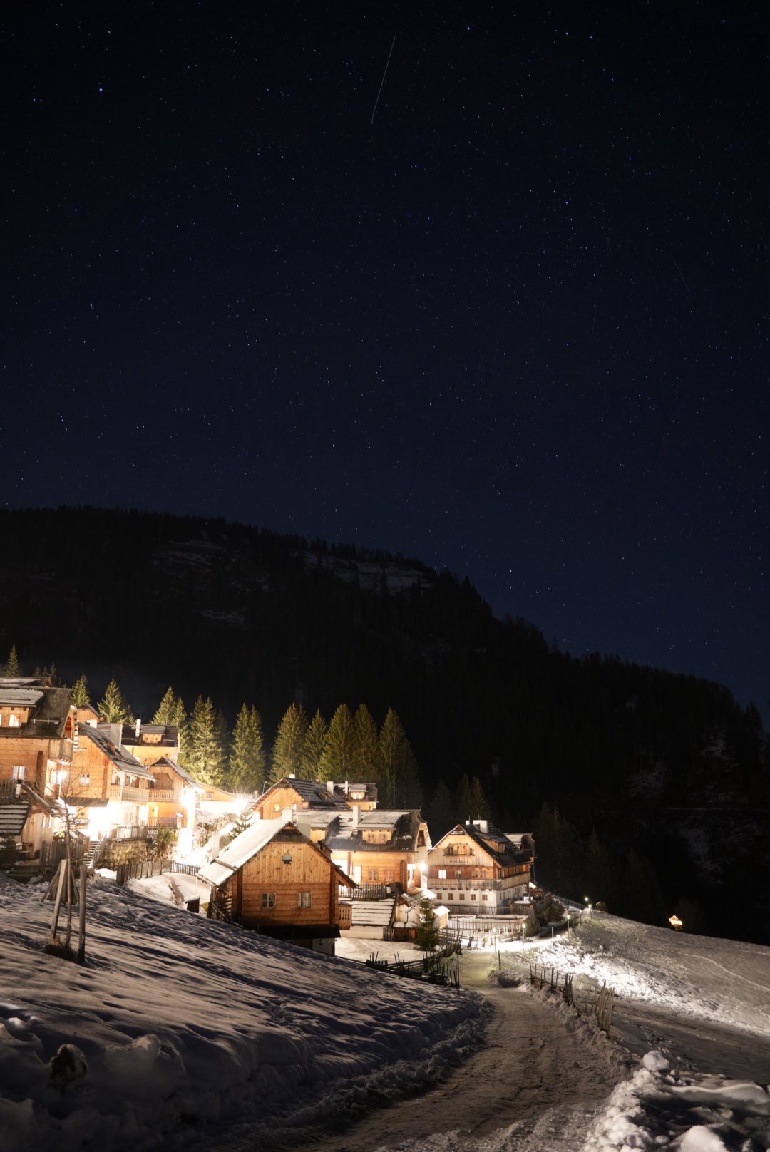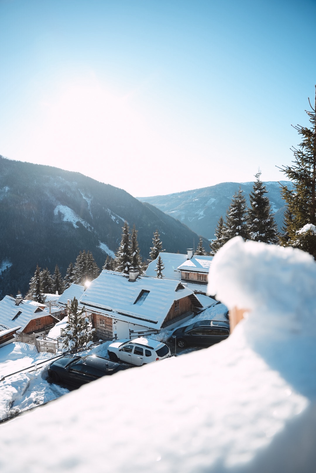 Wir waren im Almdorf Seinerzeit. Zwei Almdörfer nebeneinander, 50 Chalets und urtümliche Hütten. Das ältere Fellacher mit urigen Hütten, atemberaubender Kulisse und Gemütlichkeit pur und das neuere Kleeangerle mit authentischer Bauweise und mehr Platz für größere Gruppen. Jede Hütte hat ihren eigenen Hot Tub und zum Teil eine eigene Sauna. Es gibt zwei Wirtshäuser und Hüttenservice.