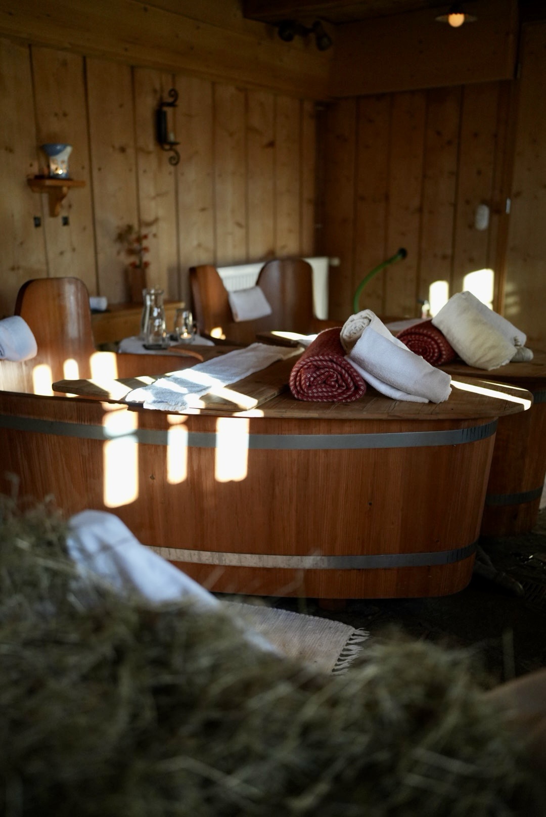 Tag 3: Noch im Schlafanzug wird wieder gemütlich in der Hütte gefrühstückt und anschließend geht es in den Spa. Während Mama und Papa ein romantisches Kräuterbad mit anschließender Ganzkörpermassage genießen, bauen die Kinder unter Betreuung ein Insektenhotel, oder sie gehen auf Schnitzeljagd. In der Hauptsaison werden regelmäßig kostenlose Kinderworkshops angeboten.Wer noch nicht entspannt genug ist, der macht bei einem Saunaritual mit, z.B. in der Honigsauna. Man bekommt ein kleines Schälchen Honig und reibt seinen Körper damit ein. In Kombination mit der Hitze in der Sauna, zieht der Honig in deine Haut ein. Honig ist ein natürliches Antibiotikum.